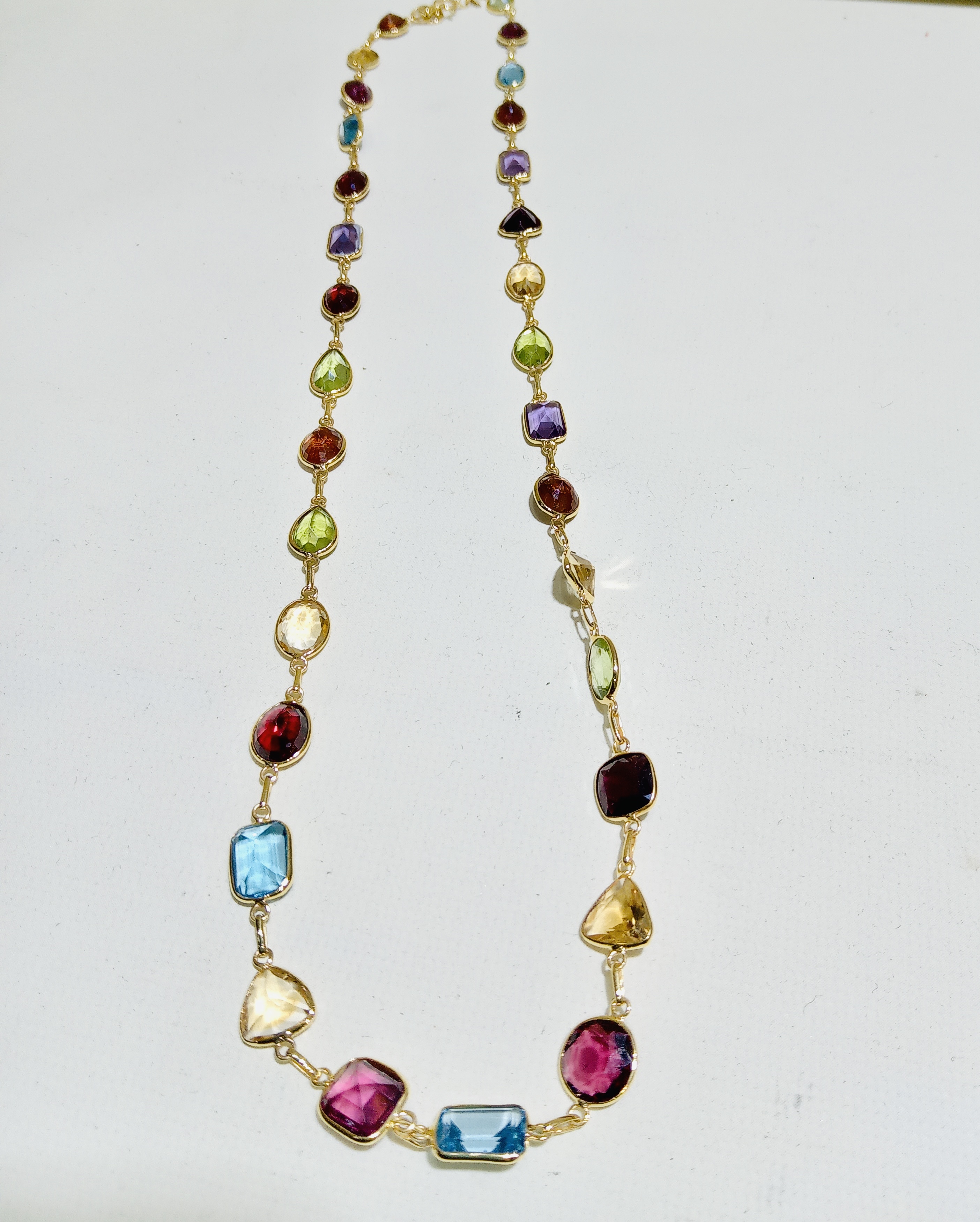 Multi-coloured yellow gold necklace with Semi Precious stones