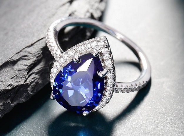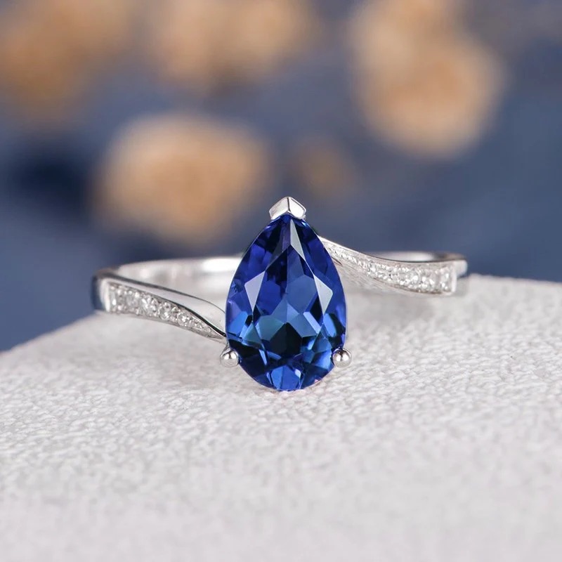 White Gold ring with Blue sapphire , Peridot and white sapphires