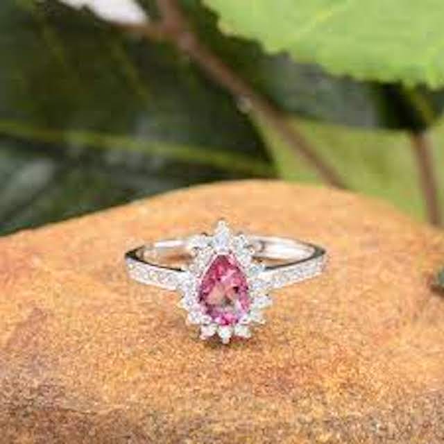 Yellow gold ring with Pink Tourmaline and Diamonds